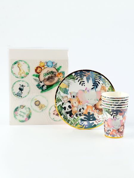 Посуда одноразовая бумажная для праздника «Зверята», с тиснением, на 6 персон. Набор одноразовой посуды «Зверята» — это удобное и стильное решение для вашего праздника. Посуда с красочным рисунком подойдет для сервировки стола на 6 персон и станет ярким дополнением к любой тематике мероприятия. Благодаря материалам высокого качества, таким как бумага и акрил, она обеспечивает комфортное использование и быструю утилизацию. <b> Особенности</b> <ul> <li> Яркий дизайн с изображением зверят добавит настроения вашему столу.</li> <li> Комплект рассчитан на 6 гостей — удобно для небольших мероприятий.</li> <li> Состоит из 18 предметов, включая тарелки, стаканчики и топперы.</li> <li> Изготовлено из экологичных материалов, что делает набор безопасным для окружающей среды.</li> <li> Подходит для использования как в помещении, так и на природе.</li> </ul> Посуда из набора идеально подходит для дней рождений, пикников и семейных обедов. Простота в использовании избавит вас от необходимости мыть посуду, а яркий дизайн понравится как детям, так и взрослым. Все, что нужно для стильной сервировки, уже включено в набор. Бумажная основа набора быстро разлагается, а элементы из акрила легко утилизируются. Это позволяет вам заботиться об экологии, не жертвуя удобством.