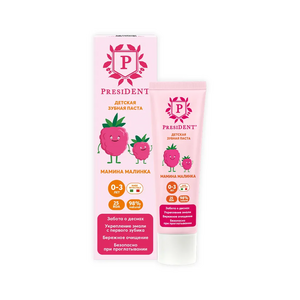 Бренд PresiDENT — всё для ухода за полостью рта высокого качества и на профессиональном уровне.Линия ДЛЯ ДЕТЕЙ И ПОДРОСТКОВ была разработана совместно со специалистами из Италии. Благодаря растительным компонентам и натуральному составу паста бережно очищает эмаль и защищает маленькие зубки от кариеса. Пасты с сочными яркими вкусами, от спелой малины до освежающих ягод, и специальной гелевой формой, будут поддерживать детские зубки в отличном состоянии.ПРЕЗИДЕНТ ЗУБНАЯ ПАСТА ДЕТСКАЯ МАМИНА МАЛИНКА — обеспечивает заботу о деснах, укрепление эмали и бережное очищение.Возраст: от 0 до 3 летБезопасно при проглатывании!Гелевая форма зубной пасты облегчает очищение в труднодоступных местах.Эффективность клинически доказана.Одобрено детскими стоматологами.Контролируемая абразивность (RDA 25) обеспечивает деликатное очищение хрупкой эмали.RDA — это СТРОГИЙ КОНТРОЛЬ за размером и концентрацией абразивных частиц.Специально подобранный абразив БЕЗОПАСНО и ЭФФЕКТИВНО удаляет налёт, ОЧИЩАЕТ и ПОЛИРУЕТ зубную эмаль. Забота о деснах Укрепление эмали Бережное очищение Безопасно при проглатыванииАКТИВНЫЕ ИНГРЕДИЕНТЫ: Биодоступный кальций способствует интенсивной реминерализации, укрепляя эмаль молочных и постоянных зубов Календула снижает риск воспаления Ксилитол 12% подавляет рост бактерий и сокращает образование зубного налетаСпециальные особенности: НЕ СОДЕРЖИТ: фторидов, агрессивных абразивов, сульфатов, сахара, синтетических красителей и ароматизаторовРезультат: эмаль укреплена, зубы очищены