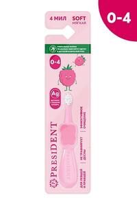 Мягкая зубная щётка PRESIDENT ® для детей от 0 до 4-х лет. Зубная щётка для ежедневного ухода за молочными зубами, с момента появления первого зубика. С увеличенным количеством щетинок – 2500 штук – эта зубная щётка обеспечивает эффективное очищение зубов и десен. Щетинки с ионами серебра обеспечивают антибактериальный эффект. Специальная форма обеспечивает правильную фиксацию во взрослой и детской руке, а уникальная ручка подходит для левшей и правшей
