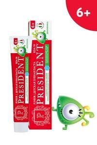 President Земляника 6+ детская зубная пастаДетская зубная паста PRESIDENT® Земляника 6+ обеспечивает защиту от кариеса, заботу о деснах, укрепление эмали и эффективное очищение.Гелевая форма зубной пасты облегчает очищение в труднодоступных местах.Эффективность клинически доказана. Одобрено детскими стоматологами. Naturals Ingredients — с натуральными ингредиентами. Биодоступные активные компоненты.Активные компоненты: Фторид (1000 ppm) укрепляет эмаль и защищает от кариеса Биодоступный кальций способствует интенсивной реминерализации Шалфей снижает риск воспаления, обеспечивая деликатный уход за нежными дёснами Ксилитол подавляет рост бактерий и сокращает образование зубного налетаНЕ СОДЕРЖИТ: агрессивных абразивов, SLS, SLES, сахараКонтролируемая абразивность (RDA 50) обеспечивает деликатное очищение хрупкой эмали.RDA* – это СТРОГИЙ КОНТРОЛЬ за размером и концентрацией абразивных частиц. Специально подобранный абразив БЕЗОПАСНО и ЭФФЕКТИВНО удаляет налёт, ОЧИЩАЕТ и ПОЛИРУЕТ зубную эмаль.