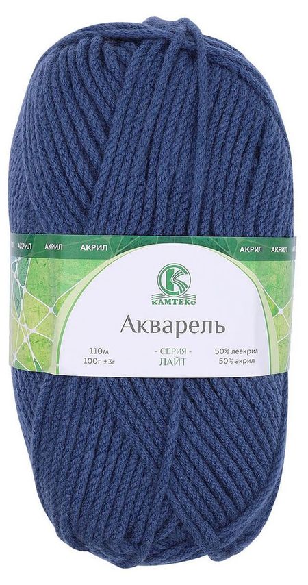 Пряжа для ручного вязания. Вес мотка 100 г, длина нити 110 м. Состав: леакрил 50%, акрил 50%. Рекомендуется к сезону "демисезон-зима". Пряжа "Акварель" имеет структуру "плетения" — двенадцать тонких нитей переплетены особым образом между собой в одну объёмную однородную нить. За лёгкость и объёмность пряжи отвечает акрил, а за хорошую формоустойчивость — леакрил. Пряжа данного соотношения метража к весу прекрасно подходит для изготовления верхних трикотажных изделий, — жакетов, кардиганов, пальто, больших шарфов, варежек и носков.