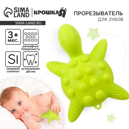 Прорезыватель силиконовый для зубов с погремушкой Крошка Я «Черепаха», 11х7,5см, зеленый. <em> Первые зубки без дискомфорта!</em> Силиконовый прорезыватель «Черепаха» — это нежный помощник для самых маленьких, который сочетает в себе функции прорезывателя и погремушки. Благодаря своей форме и безопасным материалам, игрушка станет надежным спутником малыша. <b> Особенности</b> <ul> <li> Прорезыватель изготовлен из пищевого силикона, который не содержит вредных веществ. Рельефная поверхность успокаивает воспаленные участки, снижая дискомфорт.</li> <li> Разнофактурные элементы стимулируют тактильное восприятие малыша. Игрушка способствует развитию моторики рук и координации движений.</li> <li> Очаровательная форма черепашки и яркий зеленый цвет делают игрушку особенно привлекательной для малышей.</li> </ul> <b> Польза для развития</b> Силиконовый прорезыватель-погремушка — универсальное решение для детей от 3 месяцев. Он помогает справиться с дискомфортом при прорезывании зубов, развивает мелкую моторику и радует ярким дизайном. Дайте малышу возможность играть, учиться и расти с комфортом!