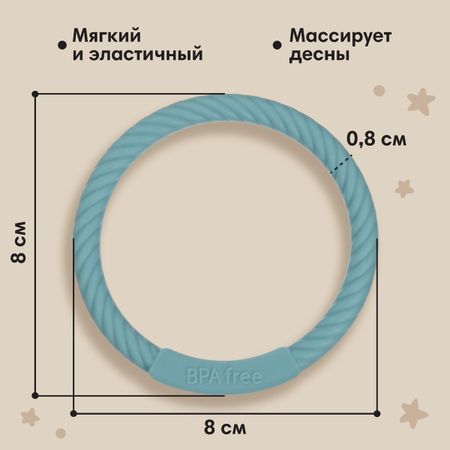 Прорезыватель силиконовый M&B «Браслетик», от 3 мес., синий. Прорезыватель снимает неприятные ощущения у малыша в период появления первых зубов. Также изделие подготовит ребенка к процессу жевания, поспособствует формированию правильного прикуса и развитию мелкой моторики рук. <b> Особенности:</b> <ul> <li> рельефные элементы для массажа десен;</li> <li> мягкий и эластичный материал;</li> <li> оптимальные форма и размер для детской ладони.</li> </ul> Применение такого прорезывателя уменьшит отеки и зуд в деснах, поможет малышу быстрее успокоиться. <b> Внимание!</b> Изделие запрещено охлаждать в морозильной камере. Товар изготовлен из прочного и безопасного силикона, не содержащего бисфенола А. Рекомендовано для детей от 3 месяцев.