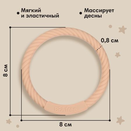Прорезыватель силиконовый M&B «Браслетик», от 3 мес., бежевый. Прорезыватель снимает неприятные ощущения у малыша в период появления первых зубов. Также изделие подготовит ребенка к процессу жевания, поспособствует формированию правильного прикуса и развитию мелкой моторики рук. <b> Особенности:</b> <ul> <li> рельефные элементы для массажа десен;</li> <li> мягкий и эластичный материал;</li> <li> оптимальные форма и размер для детской ладони.</li> </ul> Применение такого прорезывателя уменьшит отеки и зуд в деснах, поможет малышу быстрее успокоиться. <b> Внимание!</b> Изделие запрещено охлаждать в морозильной камере. Товар изготовлен из прочного и безопасного силикона, не содержащего бисфенола А. Рекомендовано для детей от 3 месяцев.
