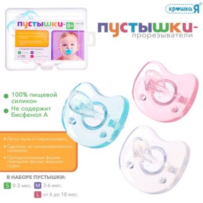 Набор из силиконовых прорезывателей станет отличным помощником для самых маленьких. Эти пустышки разработаны с учетом анатомии малышей, чтобы облегчить период прорезывания зубов и обеспечить комфорт. Они выполнены из пищевого силикона, что делает их безопасными для детей с рождения. Удобный контейнер позволяет сохранять их чистыми и всегда под рукой.ОсобенностиМассажный эффект помогает снизить дискомфорт при прорезывании зубов.Ортодонтическая форма пустышек способствует правильному развитию прикуса.Нагубник выполнен в форме сердечка — эстетично и удобно для ребёнка.Легкий уход — силикон легко моется и не впитывает запахи.Польза для малышаПрорезыватели из силикона не только облегчают зуд в дёснах, но и помогают развивать мелкую моторику благодаря удобной форме. Маленькие ручки малыша смогут легко удерживать пустышку, что способствует самостоятельности. Набор из трёх штук позволит менять прорезыватели по мере роста малыша.Прорезыватели-пустышки — идеальное сочетание практичности, безопасности и комфорта. Они подойдут для малышей с первых дней жизни и станут незаменимым аксессуаром для родителей, которые заботятся о здоровье и развитии своего ребёнка. Хранение в контейнере обеспечивает гигиеничность, а универсальный дизайн привлекает внимание малыша, делая процесс прорезывания зубов менее болезненным.