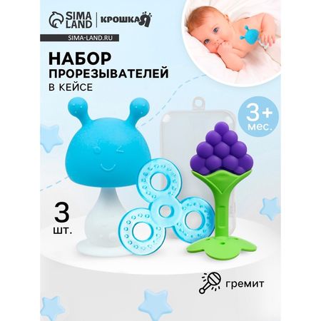 Прорезыватели силиконовые для зубов «Мой Зайка», с погремушкой, набор 3 шт., на присоске, в кейсе, Крошка Я