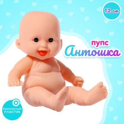 Пупс «Антошка». Кукла Антошка выглядит как настоящий младенец. У пупса большие глаза, пухлые ручки и ножки, вздернутый носик и румяные щеки. У куклы двигаются руки, ноги. Ребенок придумает множество игр с пупсом и будет учиться заботе и ответственности. Рост куклы — 12 см. Ее можно купать. Игрушка выполнена из пластика. Для детей от 3 лет.