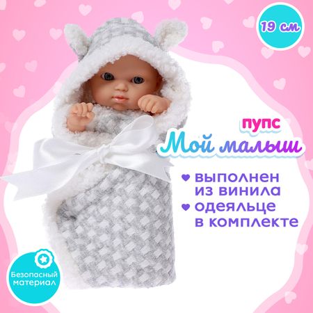 Пупс «Мой Малыш» в одеялке, с аксессуарами. Пупс — одна из самых любимых детских игрушек. Благодаря ей малыши могут освоить социальные роли, научиться заботиться о ком-либо, проявить ответственность. <b> Особенности пупса</b> <ul> <li> Выполнен из резины, без запаха.</li> <li> Ручки и ножки двигаются.</li> <li> Одежда и шапочка снимаются.</li> <li> Можно купать.</li> <li> Не пьет и не писает.</li> </ul> В комплект с пупсом входит мягкий конверт для пеленания.