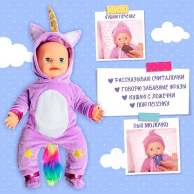 Пупс интерактивный «Малыш», 6 функций, озвученный, кушает, пьет, играет в ладушки, высота 40 см. Ваша принцесса любит играть в дочки-матери? Тогда от этого набора с пупсом и аксессуарами она будет в восторге! «Малыш» — это не только кукла, за которой нужно ухаживать, но и прекрасный компаньон для больших воображаемых и реальных приключений. <b> Подробнее о наборе</b> <ul> <li> Высота пупса — 40 см.</li> <li> Туловище куклы мягконабивное, ручки, ножки, голова резиновые.</li> <li> Кукла умеет говорить и при этом шевелить губами, моргать глазками, а еще петь песенку.</li> <li> Пупс ест с ложечки (причмокивает), пьет (имитация, реагирует на кружечку), ест печенье (звук откусывания, если поднести печенье).</li> <li> Одежда легко снимается, поэтому ребенок сможет менять образы и почувствует себя настоящим стилистом!</li> <li> Также в наборе есть аксессуары: стакан, ложечка с тарелкой и печенье (имитация). С ними игра станет увлекательнее.</li> </ul> В серии наборов представлены и другие пупсы. Соберите их все! <b> Играть в куклы — полезно</b> Взаимодействуя с куклами, девочка развивает креативность и эстетический вкус, а также тренирует сообразительность, фантазию и мелкую моторику. Ребенок осваивает социальные роли, проецирует модели поведения взрослых на игровые сюжеты, учится заботе и ответственности.