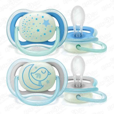 Пустышка Avent силиконовая ночная светящиеся с футляром для хранения и стерилизации 2шт с 6-18мес