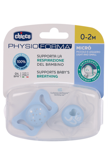 Пустышка Chicco Micro силикон капли/нейтральный голубая (0-2 мес), 2 шт
