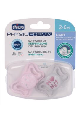 Пустышка Chicco Physio Light силикон нейтральный/стрелочки розовая (2-6 мес), 2 шт