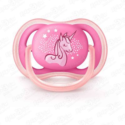Пустышка силиконовая ортодонтическая AVENT розовая для девочек с рисунком с 6-18мес 1шт