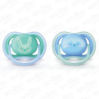 Пустышки Avent Air силиконовые анатомические маленькие заяц и ежик 2шт с 6мес
