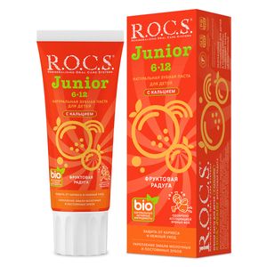 Натуральная зубная паста для детей в возрасте от 6 до 12 лет. Разработана специально для детей в период смены молочных зубов на постоянные Обеспечивает защиту от кариеса и укрепление эмали молочных и первых постоянных зубовНе содержат парабенов, SLS и фторидов.Безопасна при случайном проглатывании.Двойной Экстракт Коры Осины (Pópulus Trémulа) — комбинация водного и СО2 экстрактов — является богатейшим источником биоактивных компонентов, оказывающих комплексное противовоспалительное действие на ткани пародонта. Экстракт коры осины активирует репаративные и метаболические процессы, улучшает трофику тканей пародонта, а также нормализует систему агрегации и дезагрегации тромбоцитов, влияющих на гемморагический синдром при заболеваниях пародонта. Исследованиями подтверждено: повышение резистентности тканей полости рта, достоверное изменение активности маркеров гидролитических и энергетических процессов в эндоплазматической сети клеток, влияние на метаболические и окислительно-восстановительные реакции в тканях.Благодаря противовоспалительным и антибактериальным свойствам экстракт коры осины позволяет влиять на основные этиологические факторы воспаления в период смены зубов.Кальция Глицерофосфат, Магния Хлорид, являясь минеральными компонентами с высоким уровнем БИОдоступности, позволяют активно поддержать процесс реминерализации зубов, повысить резистентность эмали к действию кислот, повысить механическую прочность эмали зубов, обогатить слюну минеральными компонентами. Процесс прорезывания зубов сопряжен с существенной потерей минеральных компонентов, поэтому прорезавшийся зуб нуждается в активной реминерализации и восполнении уровня кальция и фосфора на всех участках зуба. Преимуществом минерализующих систем R.O.C.S.® является способность встраиваться в естественный физиологический процесс минерализации зубов.Ксилит 12% обладает комплексным влиянием на состав микрофлоры, подавляет активность кариесогенных бактерий, обеспечивает пребиотическое влияние на состав микрофлоры полости рта, препятствует отложению зубного налета благодаря способности влиять на адгезию микроорганизмов зубной бляшки к тканям полости рта. Способствует включению кальция в состав минерализованных тканей зубов.