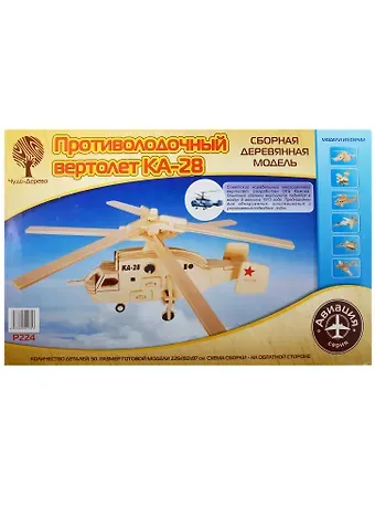 Р224 Сборная деревянная модель Противолодочный вертолет КА-28 (50 дет.) (225х192х97) (Авиация) (Чудо-Дерево) (3+)