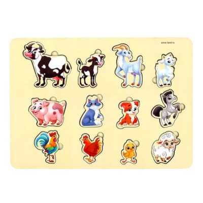 Рамка — вкладыш «Животные фермы», 12 вкладышей. Рамка-вкладыш — это игровая доска для развития зрительного восприятия, тактильных функций, моторики пальчиков, логического и пространственного мышления у малышей. <b> Особенности игрушки</b> <ul> <li> Сделана из прочного и экологичного материала — дерева. Поэтому безопасна для детского здоровья.</li> <li> С помощью рамки-вкладыша ребенок познакомится с животными нашей планеты.</li> <li> Для большей продуктивности занимайтесь вместе с ребенком, расскажите о среде обитания зверей и чем они питаются.</li> </ul> Рекомендовано для детей от 3 лет.