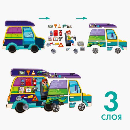 Рамка — вкладыш «Машинка», 33 детали. Собирайте рамку-вкладку — изучайте с малышом строение автомобиля. <b> Как играть</b> <ul> <li> Рамка-вкладка состоит из 33 вынимающихся деталей: кузова, салона, двигателя, багажника.</li> <li> Можно просто доставать детали из рамки и помещать их обратно. Или предложить поиграть в механика и открыть мастерскую или автомойку.</li> </ul> <b> Польза занятий с рамкой-вкладкой</b> Во время игры с рамкой ребенок познакомится с устройством автомобиля и потренирует мелкую моторику и координацию движений.