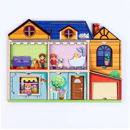 Рамка-вкладыш «Дом». Рамка-вкладыш — это игровая доска для развития зрительного восприятия, тактильных функций, моторики пальчиков, логического и пространственного мышления у малышей. <b> Особенности игрушки</b> <ul> <li> Сделана из прочного и экологичного материала — дерева. Поэтому безопасна для детского здоровья.</li> <li> Размер игрушки: 31 х 23 см.</li> </ul> Рекомендовано для детей от 3 лет.
