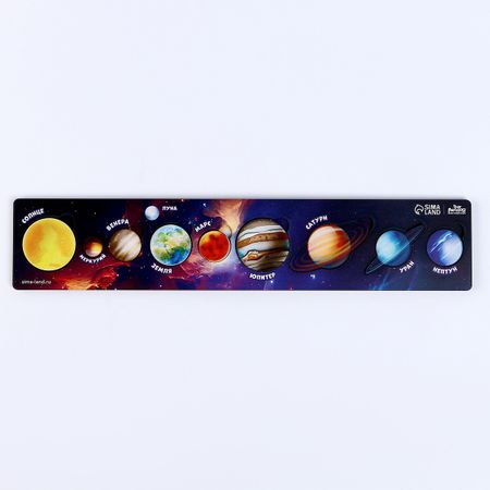 Рамка-вкладыш «Солнечная система». Рамка-вкладыш — это многофункциональная обучающая игрушка, которая способствует развитию у ребенка пространственного мышления, внимания, мелкой моторики, поможет ему научиться различать предметы по формам и цветам, а также расширит кругозор ребенка. Деревянная головоломка познакомит кроху с солнечной системой. Помогите малышу найти для каждой планеты подходящее место в рамке. Вместе обсудите, какая планета самая большая, а какая маленькая. Проговорите названия планет и их порядок от солнца. А на какой планете мы живем и как далеко она от солнца?