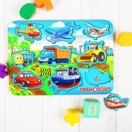 Рамка — вкладыш развивающая 3Д «Транспорт». Изучаем виды транспорта! Перед началом игры дайте ребенку рассмотреть фигурки транспорта. Спросите как называется каждый, на каком транспорте он уже передвигался. Располагайте вместе с малышом транспорт на поле, учитывая место его передвижения. Придумывайте сюжеты и разыгрывайте истории!