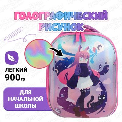 Ранец JUNGER корпусный Девочка-кошка с голографическим рисунком для начальной школы