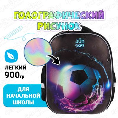 Ранец JUNGER корпусный с голографическим принтом Футбольный мяч черный для начальной школы