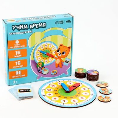 Развивающая игра «Часы. Учим время», 16 карточек, 16 фишек. <b> Игровые часы — это отличный помощник для ребенка в изучении времени и цифр!</b> Научить ребенка понимать время — сложный процесс, обязательный в познании окружающего мира. Часы станут не только отличным помощником в изучении времени, но и элементом декора в комнате вашего малыша. <b> Основные характеристики игрушки:</b> <li> в наборе 16 фишек</li> <li> 16 карточек для игры</li> <li> часы выполнены из дерева, а значит экологически чисты и безопасны для здоровья малыша</li> <li> размер часов 18 х 18 см</li> <b> Как пользоваться карточками?</b> <ol> <li> Расскажите малышу о том, что такое время, и как его измеряют.</li> <li> Начните изучение времени с часов. Объясните, где часовая стрелка, а где минутная, и чем они отличаются друг от друга.</li> <li> Возьмите карточки с изображением стрелок и попросите ребенка выставить такое же время на деревянных часах.</li> <li> После этого используйте карточки с электронными часами. Задача малыша – выставить указанное время на часах (на обороте каждой карточки будет рисунок со стрелками для проверки ответа).</li> <li> Используйте в игре фишки. Попросите малыша распределить их в хронологическом порядке. Расскажите о распорядке дня.</li> <li> Выберите одну фишку. Ребенку необходимо на часах выставить то время, в которое происходит это действие.</li> </ol> <b> Как заниматься с часами?</b> <ol> <li> Для начала поиграйте с ребенком в игру «Часовщик». Первые игрок заводит часы и спрашивает: «Который час?», второе игрок отвечает. По очереди меняйтесь ролями.</li> <li> Минутных делений гораздо больше, от ребенка требуется владение счетом в пределах 60, умение считать десятками. Не спешите, медленно, но верно учите малыша определять время с помощью игр. Воспользуйтесь карточками или придумывайте свои сюжеты.</li> </ol> <b> Такие часы прослужат вам долго и буду всегда радовать кроху!</b>