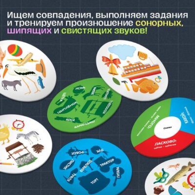 Развивающая игра «Умный труббль», 70 карточек, 3+. Развивающий набор «Умный труббль» поможет малышам от 3 лет автоматизировать произношение сложных звуков, потренировать артикуляцию и внимательность, научиться изменять слова и сформировать грамматический строй речи. Внутри вы найдете 70 карточек с разными животными и предметами, кубик и памятку для родителей. <b> Как играть</b> <ul> <li> Перед занятием разделите карточки на 2 колоды: с синей и зеленой рубашкой. Карточки с синей рубашкой содержат слова с твердыми и мягкими звуками Р и Л, а зеленые карточки — слова с шипящими и свистящими звуками.</li> <li> Карточки с заданиями временно отложите в сторону, выберите колоду, которая подходит к теме вашего занятия, и приступайте к играм.</li> <li> Выберите карточку с заданием. Например, вы будете искать место звука в слове.</li> <li> Бросьте кубик, чтобы выбрать упражнение.</li> <li> Достаньте из стопки карточку с картинками и попросите малыша найти на ней слова, подходящие по условиям.</li> </ul> Набор подходит для занятий с детьми от 3 лет.