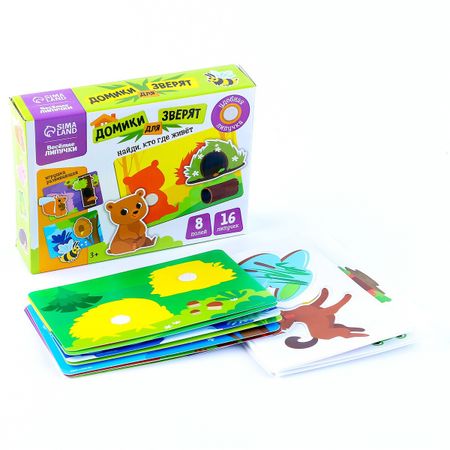 Развивающая игра на липучках «Изучаем животных. Кто где живет?». Веселые липучки «Кто где живет» — это игра, в которую можно играть не только дома, но и брать с собой на прогулку или в детский сад! <b> Как играть</b> <ul> <li> В наборе вы найдете 8 липучек с животными и 8 полей с разными локациями.</li> <li> Задача ребенка — прикрепить липучку на подходящее поле.</li> <li> Детали выполнены из обработанного пластика, безопасного для пальчиков малыша.</li> </ul> <b> Чем полезны занятия с набором</b> Игры с веселыми липучками развивают моторику, логическое и пространственное мышление, расширяют кругозор малыша и знакомят с животным миром.