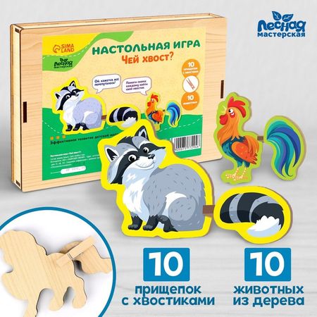 Деревянная игра «Чей хвост?» — это увлекательный способ для детей от 3 лет развивать кругозор, координацию и мелкую моторику. В комплекте деревянные фигурки животных и прищепки-хвостики, которые нужно правильно подобрать и закрепить.ОсобенностиИзготовлена из натурального дерева, что делает её безопасной, экологичной и долговечной.Простая механика: ребёнок соединяет хвостики с соответствующими животными, развивая внимание и логическое мышление.Многофункциональность: фигурки можно использовать как счётный материал или в сюжетно-ролевых играх.Компактный размер идеально подходит для игр дома или в детском саду.Подходит для мальчиков и девочек, дополняя развивающую среду яркими акцентами.Чем полезна эта игра«Чей хвост?» помогают ребёнку освоить важные навыки: различать животных, развивать мелкую моторику и координацию движений. Играя с прищепками, малыш учится выполнять последовательные действия, тренирует память и терпение. Задача усложняется, если перепутать хвостики — ребёнок должен найти и исправить ошибки, что стимулирует логическое мышление. Это не только занимательное занятие, но и источник новых знаний, которые формируют базовые когнитивные навыки. Каждый этап игры стимулирует самостоятельность и уверенность в своих силах.