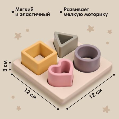 Развивающая игрушка — сортер M&B «Изучаем фигуры», пищевой силикон, бежевый. Игрушка-сортер выполнены из приятного на ощупь, мягкого, гипоаллергенного пищевого силикона. В комплект входит мягкая доска и фигурки. Малышу нужно соотнести фигуру с каждым отверстием сортера. Сортер поможет выработать у ребенка усидчивость, научит концентрировать внимание, сосредотачиваться и доводить начатое до конца. Педиатры и детские психологи уверены, что такие игрушки ускоряют творческое и умственное развитие у детей. <b> Преимущества такой игрушки:</b> Развитие мелкой моторики и координации Развитие тактильных ощущений Развитие логики, внимания и воображения Изучаем цвета и формы