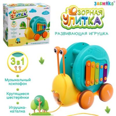 Музыкальная улитка на верёвочке — это яркая развивающая игрушка, которая превращает прогулки малыша в увлекательное путешествие. Удобная форма и продуманные элементы делают её идеальным выбором для детей от года.ОсобенностиИгрушка-каталка снабжена удобной верёвочкой, чтобы ребёнок мог легко тянуть её за собой.Встроенный ксилофон открывает дверь в мир звуков. Пусть ребёнок пробует создавать мелодии самостоятельно, так он будет учиться различать звуки и ритмы. Простая механика инструмента делает его доступным даже самым маленьким музыкантам.Игрушка подходит как мальчикам, так и девочкам, что делает её универсальным решением для подарка. Яркие цвета и безопасный пластик привлекут внимание малыша, не вызывая аллергии или дискомфорта.Развиваемся играяМузыкальная улитка способствует развитию координации движений, слухового восприятия и мелкой моторики. Благодаря компактному размеру и лёгкости, она станет постоянным спутником малыша дома и на прогулке.