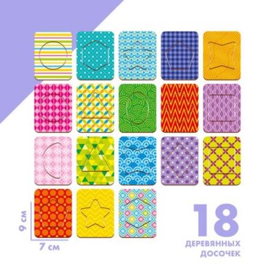 Развивающие досочки «Сложи узор», по методике Сегена, 18 шт.. Головоломка создана по методике Эдуарда Сегена (доски с вкладышами). Суть игры: в карточку со специальной выемкой необходимо вставить недостающий элемент, подходящий по форме и цвету. Занятие с такими карточками развивает моторику, логическое и пространственное мышление, дает стимул для развития речи.