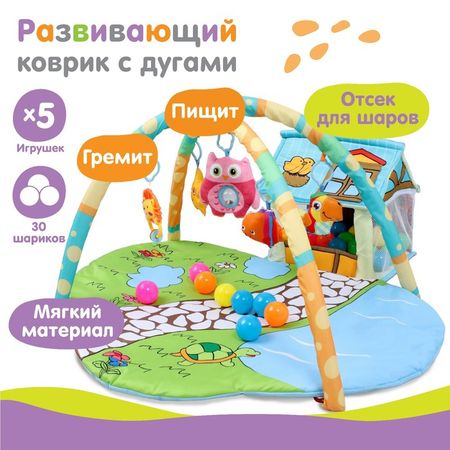 Главная » Товары для детей Развивающий коврик с дугами «Домик», размер 93×70 см, 30 цветных шариков, 5 игрушек Просмотров 2 Размер коврика: 930х700х470Размер домика: 360х260х320