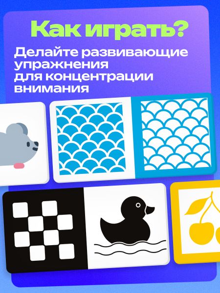 Развивающий набор «Мои первые картинки», 80 карточек, 0+. Развивающие карточки для малышей «Мои первые картинки» — это первый шаг к познанию мира. Контрастные изображения помогают младенцам лучше фокусировать взгляд, развивают восприятие и внимательность. <b> Особенности</b> <ul> <li> 80 карточек с черно-белыми и цветными изображениями.</li> <li> Простые и понятные картинки для раннего развития.</li> <li> Прочные материалы, безопасные для малышей.</li> </ul> <b> Польза и развитие</b> С первого дня жизни малыш осваивает окружающий мир. Контрастные изображения поддерживают развитие зрительного восприятия, а цветные иллюстрации помогают лучше различать оттенки. Это не просто игра, а полезное занятие, формирующее базовые навыки.