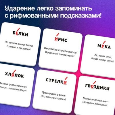 Развивающий набор «Где ударение?», 20 карточек, 3+. Развивающий набор «Где ударение?» помогает детям освоить правильное произношение слов в русском языке. В игровой форме ребенок научится ставить ударение, запоминать слова и разовьет речь. Карточки с заданиями подойдут для занятий дома, в детском саду или начальной школе. <b> Особенности</b> <ul> <li> 20 карточек с картинками и веселыми стишками.</li> <li> Рифмованные подсказки для легкого запоминания.</li> <li> Стирающийся маркер для многоразового использования.</li> <li> Три методики обучения в одном комплекте.</li> </ul> <b> Как использовать</b> <ul> <li> Ищите ударные гласные в словах.</li> <li> Узнавайте, как правильно ставить ударение.</li> <li> Узнавайте, что такое омографы.</li> </ul> <b> Чем полезен набор?</b> Игровой формат помогает ребенку не просто запомнить правила ударения, но и развить: <ul> <li> логическое мышление — через поиск закономерностей в словах;</li> <li> память — благодаря рифмам и повторениям;</li> <li> речь — правильное произношение улучшает дикцию.</li> </ul> Набор подойдет детям от 5 лет и станет отличным помощником в подготовке к школе.