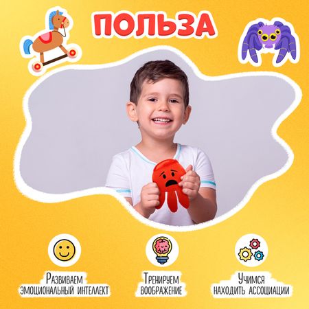 Развивающий набор «Кармашек эмоций». Развивающий набор «Кармашек эмоций» поможет малышам от 3 лет развить эмоциональный интеллект, научить понимать свои чувства и самостоятельно регулировать свое поведение. Проявляя эмоции, ребенок будет лучше понимать себя, других, научится увереннее общаться. <b> Как играть</b> <ul> <li> Научите ребенка распознать эмоции. Разложите перед малышом кармашки и карточки с лицами. Попросите малыша сравнить эмоции на кармашках и на карточках, а затем найти похожие.</li> <li> Обсудите, какие эмоции испытывают люди и животные на карточках. Спросите, как можно назвать эти эмоции. Проговорите название каждого чувства и подберите к нему ситуации из жизни ребенка.</li> <li> Сравните далекие и близкие по значению эмоции: радость и грусть, страх и удивление. Чем они похожи, а чем отличаются? Попросите малыша по очереди удивиться, испугаться, погрустить, обрадоваться. Договоритесь: вы показываете кармашек, а малыш повторяет эмоцию с него.</li> <li> Раскладывайте карточки по кармашкам, проговаривайте, какие эмоции с ними связаны, выполняйте задания из памятки для развития малыша.</li> </ul>