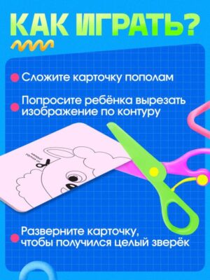 Развивающий набор «Умные ножницы, животные», по методике Монтессори. С этим набором малыш научится работать с ножницами. Он узнает, как ровно по контуру вырезать картинки из бумаги. Как только у ребенка получились картинки с мордочками, дорисуйте недостающие детали и вместе раскрасьте их. В комплект входит 20 развивающих заданий и ножницы. Малыш познакомится с веселыми и добрыми зверюшками, запомнит их названия и как они выглядят. Играйте и развивайтесь вместе с нами! Развивающий набор «Умные ножницы» рекомендован детям старше 3 лет. Он способствует развитию у малыша мелкой моторики, мышления, памяти и внимания. <b> Будьте внимательны: работать с ножницами ребенок должен только в присутствии взрослого!</b>