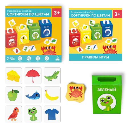 Развивающий набор-сортер «Сортируем по цветам», 2+. <b> Развивающая игра для малышей</b> Это полезная игра, благодаря которой можно не только выучить основные цвета, но и натренировать мелкую моторику, координацию движений и глазомер. Мы подготовили 8 вариантов, чтобы интересно и с пользой провести время. <b> Как играть?</b> Поставьте все четыре контейнера перед ребенком в один ряд. Подготовьте любой непрозрачный мешочек (в комплект не входит). Сложите в него все карточки. Потрясите мешочек, чтобы карточки перемешались. Ребенок запускает руку в мешочек и достает первую попавшуюся карточку. Вместе произнесите, что на ней изображено и какого это цвета. Теперь задача ребенка — поместить карточку в контейнер того же цвета, что и предмет или животное на карточке. На каждый контейнер приходится по 15 карточек этого цвета. Затем малыш вытягивает следующую карточку и опускает ее в контейнер нужного цвета. Играйте до тех пор, пока все карточки не закончатся. А после можно заглянуть в контейнеры, посмотреть на карточки и достать их. В правилах есть и другие варианты игры, которые помогут малышу научиться мыслить логически, строить логические цепочки, искать лишнее, исправлять ошибки взрослого и многое другое! <b> Внутри вы найдете</b> <ul> <li> 60 карточек.</li> <li> 4 картонных контейнера.</li> <li> Правила игры.</li> </ul> <b> Играем и изучаем цвета!</b>