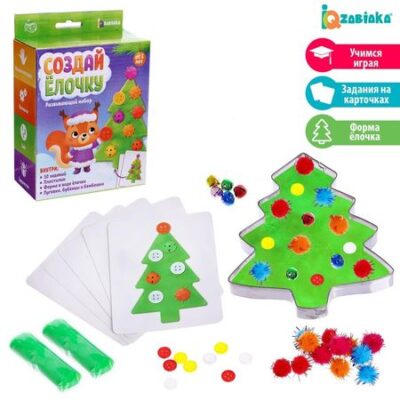 Благодаря этому набору ребёнок почувствует себя настоящим волшебником! Малыш создаст свою ёлочку с помощью пластилина и ярких украшений.Как пользоваться набором?Равномерно распределите пластилин на плоской поверхности.Пусть кроха возьмёт карточку и посчитает количество предметов, назовёт цвет каждого украшения и опишет материал, из которого они сделаны.Вместе с ребёнком выложите на пластилиновую ёлочку украшения с карточки.Пусть кроха проявит фантазию и украсит ёлочку как пожелает!Играйте и заряжайтесь вместе с IQ-ZABIAKA новогодним настроением!