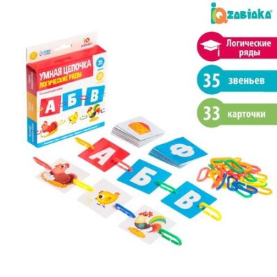 С этим развивающим набором ребёнок выучит буквы, разовьёт навыки речи, расширит словарный запас.Как использовать набор?Достаньте из коробочки всё содержимое: 35 звеньев и 33 двусторонних карточки с дырочками. На одной стороне находятся сюжетные картинки, на другой — буквы.Карточки соединяются между собой с помощью звеньев.Попросите кроху составить слова из букв и увлекательные истории из картинок.Играйте командами и устраивайте весёлые соревнования.Развивающий набор рекомендован детям старше 3 лет.
