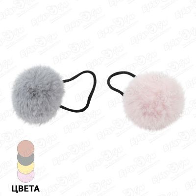 Резинки для волос с меховыми помпонами серый и персиковый 2шт в ассортименте