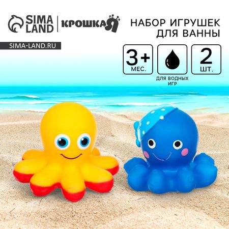Резиновые игрушки для ванны Крошка Я «Осьминоги», с брызгалкой, в наборе 2 шт.. Купаться веселее с любимыми игрушками! Набор игрушек поможет превратить купание в увлекательное приключение и привить малышу любовь к купанию! Мы разработали наборы специально для детей, которые только начинают познавать окружающий мир, веселые персонажи и предметы развивают кругозор крохи, его моторику и тактильное восприятие, позволяя сделать купание веселым и насыщенным! Развиваемся играя! После игр в воде мы рекомендуем хорошо просушивать игрушку, чтобы она служила вам намного дольше. Изделия выполнены из мягкого, пластичного безопасного материала — не содержащего вредных веществ. Качество товара подтверждается сертификатом соответствия ЕАС.