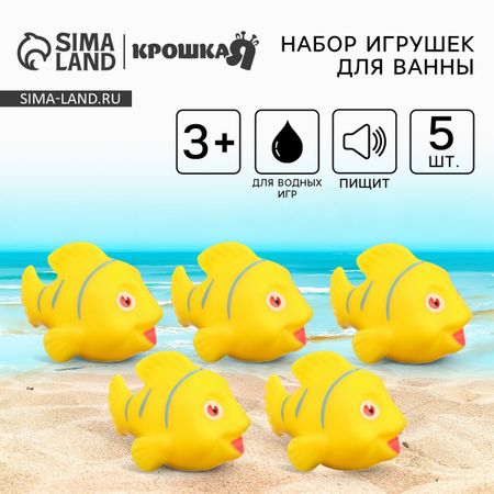 Резиновые игрушки для ванны Крошка Я «Желтые рыбки», с пищалкой, в наборе 5 шт.. Купаться веселее с любимыми игрушками! Набор игрушек поможет превратить купание в увлекательное приключение и привить малышу любовь к купанию! Мы разработали наборы специально для детей, которые только начинают познавать окружающий мир, веселые персонажи и предметы развивают кругозор крохи, его моторику и тактильное восприятие, позволяя сделать купание веселым и насыщенным! Развиваемся играя! После игр в воде мы рекомендуем хорошо просушивать игрушку, чтобы она служила вам намного дольше. Изделия выполнены из мягкого, пластичного безопасного материала — не содержащего вредных веществ. Качество товара подтверждается сертификатом соответствия ЕАС.