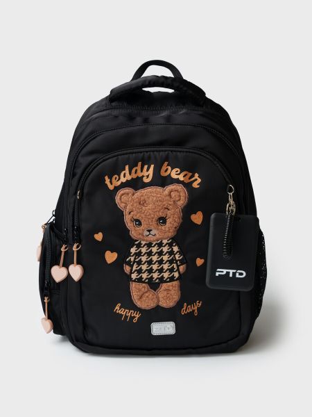 Трехсекционный рюкзак с ортопедической спинкой для девочки школьницы. Конструкция ортопедической вентилируемой спинки обеспечивает максимальный комфорт и позволяет снизить нагрузку на спину школьников и дошкольников. Широкие мягкие вентилируемые лямки регулируются по высоте, что делает рюкзак идеальным как для первоклассника, так и для детей из средней школы. Спереди лямки можно закрепить на застежку, чтобы они не спадали. Дно имеет уплотнительный вкладыш, который при необходимости можно не использовать. Снизу дна имеются резиновые "ножки", чтобы низ рюкзака не пачкался. Рюкзак имеет два основных отделения на молнии один большой карман спереди. Внутри имеется несколько отделений и кармашков для систематизации школьных принадлежностей. По бокам есть карманы: один — сетчатый, второй — на молнии. У рюкзака есть две ручки: одна — мягкая вентилируемая ручка для ношения в руках, вторая маленькая — для того, чтобы рюкзак можно было вешать на вешалку. Модель выполнена из водонепроницаемой ткани. Ранец имеет светоотражающие детали на лямках, по бокам, на переднем отделении, чтобы ребенка было хорошо видно в темноте со всех сторон. В подарок идет пластиковый чехол для пропуска на растягивающейся пружине. Пружина дает возможность спокойно приложить пропуск к турникету не снимая рюкзак. Ранец декорирован аппликацией — милым Мишкой. Рюкзак в школу можно дополнить мешком для обуви и пеналом в том же дизайне. Размер рюкзака: 29*38*19 см. Вес рюкзака: 630 гр
