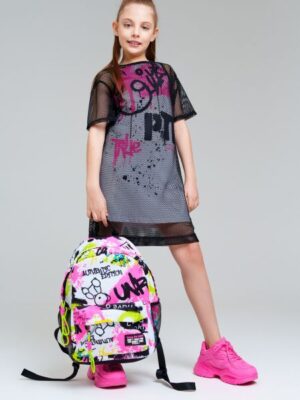 Стильный принтованный рюкзак в силе граффити для девочки-подростка. Прямые широкие регулируемые лямки с мягкими вкладками и сетчатым покрытием для улучшения вентиляции. Основной отдел на молнии с защитным клапаном. Все наружные молнии с модными навесами из толстого шнура. Спереди большой удобный карман на молнии с защитным клапаном, 2 боковых кармана из сетки на резинке. Внутри: отдел для папок, карман на молнии, 2 кармана без замка для телефона. Используется брендированная подкладка. Усиленная спинка и дно. Светоотражающие элементы на плечевых ремнях. Параметры: высота — 40 см, ширина -30 см, глубина — 15 см. Очень легкий.