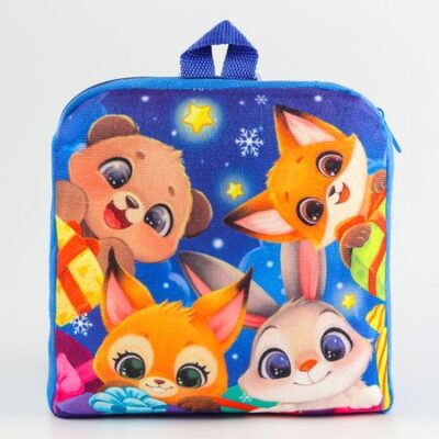 Рюкзак детский новогодний «Зверята», 24 х 24 см. В новогодние праздники уделите упаковке подарков особое внимание. Ведь разворачивание презента в самую волшебную ночь года — особенный ритуал, такой же сказочный, как и само торжество. Тематический рюкзак станет прекрасным оформлением вашего гостинца. В него можно положить что угодно: конфеты, игрушки, любые приятные мелочи. Он сделает ваш презент особенным и сама станет запоминающимся подарком. А обычные сладости, упакованные таким образом, превратятся в настоящий сюрприз.