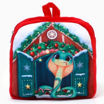 Рюкзак детский новогодний «Змея», 24 х 24 см. В новогодние праздники уделите упаковке подарков особое внимание. Ведь разворачивание презента в самую волшебную ночь года — особенный ритуал, такой же сказочный, как и само торжество. Тематический рюкзак станет прекрасным оформлением вашего гостинца. В него можно положить что угодно: конфеты, игрушки, любые приятные мелочи. Он сделает ваш презент особенным и сама станет запоминающимся подарком. А обычные сладости, упакованные таким образом, превратятся в настоящий сюрприз.