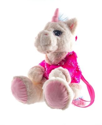 Компактный рюкзак в виде единорога с одним небольшим отделением-карманом — отличный подарок для девочки. Лямки рюкзака регулируются, сзади рюкзак застегивается на вертикальную молнию. Вверху есть петелька, на которую рюкзак можно повесить на крючок. Изготовлен из качественных сертифицированных материалов.